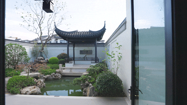 苏式园林神韵很浓,长辈可尽兴赏玩花、鸟、鱼、石之趣,亭台楼榭、竹林巷道、折桥、人工湖、假山、奇石、树影、花影、月洞门...连续缀。