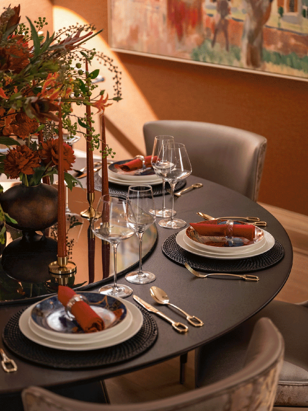 正在上海市的富贵取炊火中,哑光取纹丰硕的米白洞石陪衬出了高光黑色烤漆的艰深取沉静。